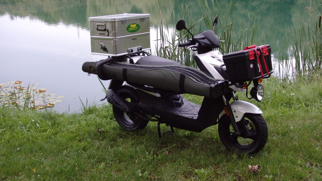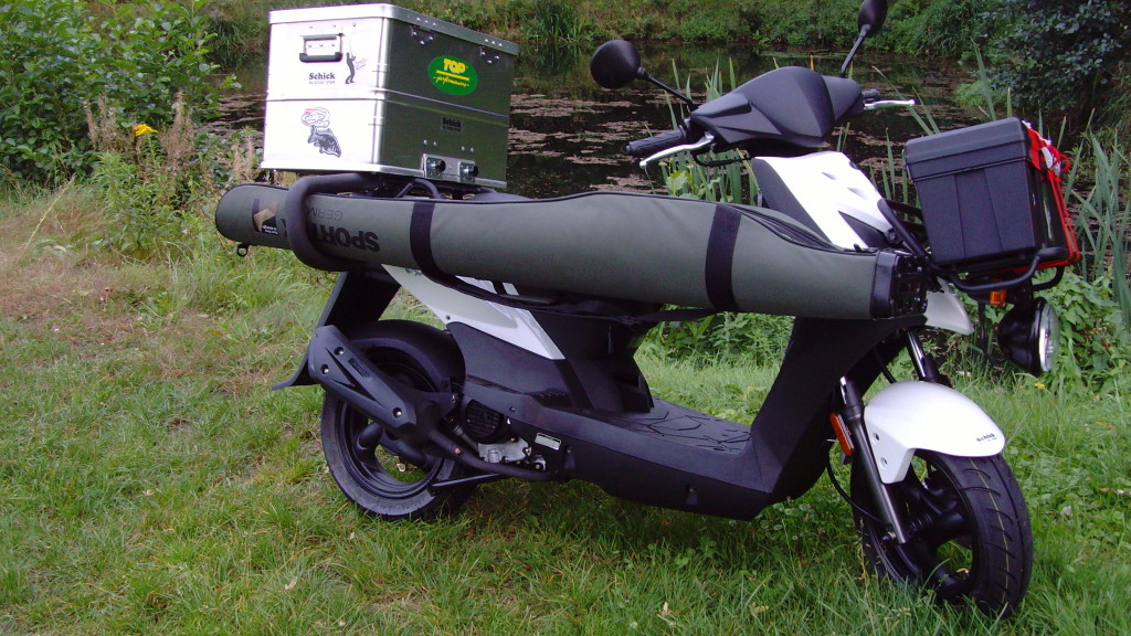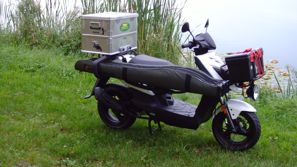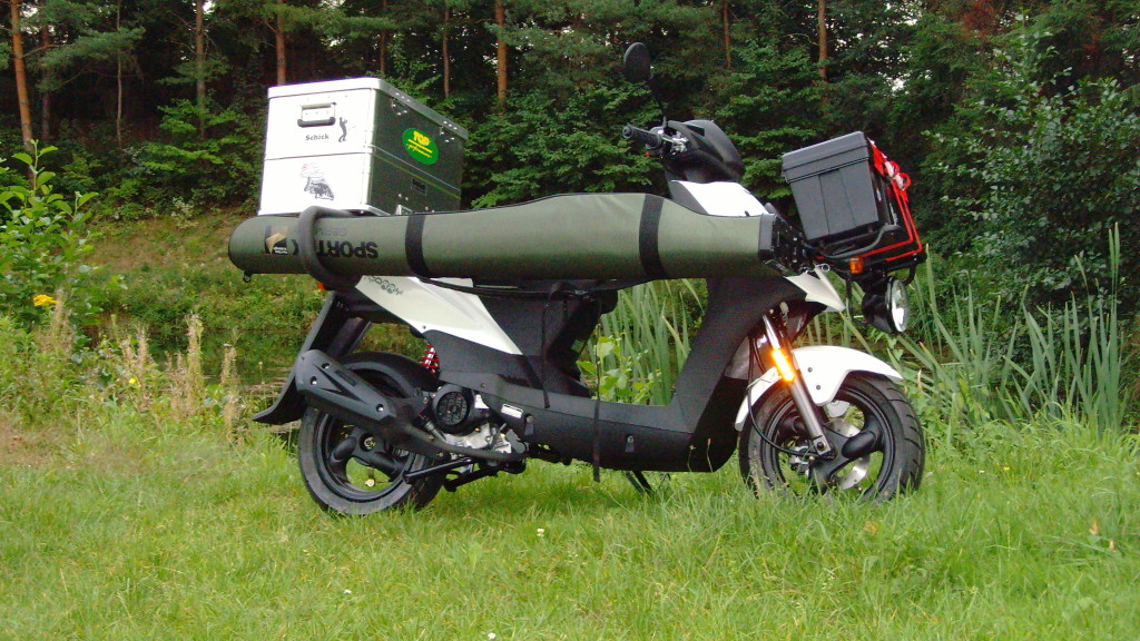 Schon oft wurden wir von Anglern gefragt, wie kann ich denn mein Angelzeug mit dem Motorroller ans Wasser bringen?